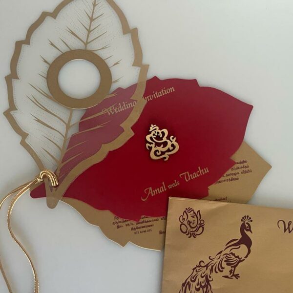 Red with Gold Border Beauty Laser cut Wedding Invitation