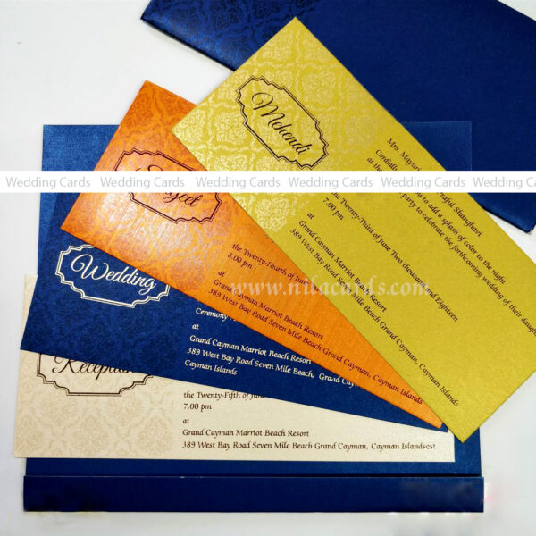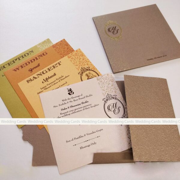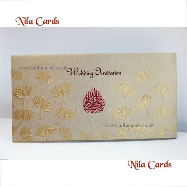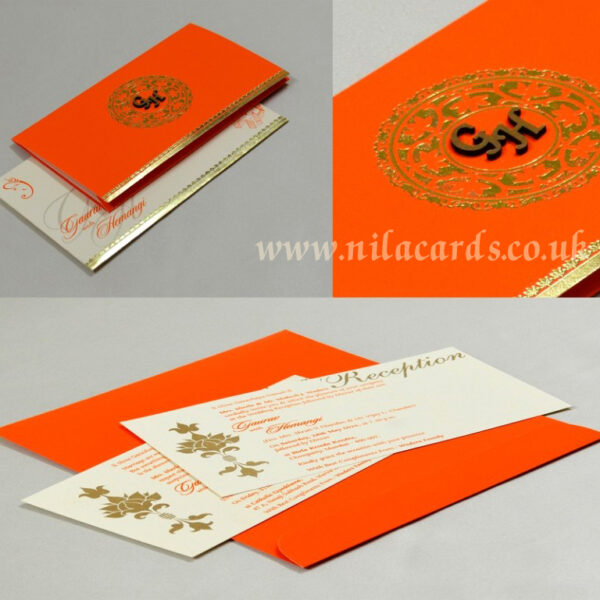 Musilim wedding invitations UK are simple and charming. They come in very light colurs some times very dark as black or brown too. We have satin musilim wedding invitation cards which are very elegant. We also have boxed wedding invitations for Islamic weddings. We accommodate the designs of tradition and beliefs. Our Indian wedding invitations mixes the modern look by using different textured boards and printing mechanisms. Muslim wedding cards in the UK most often contains separated inserts fot each ceremony and we design them to bring out the richness and happiness. We use logos and boarder designs whih are uniques and nicely mingle with the wedding invitations UK style. The material quality is excellent which is not less than the clear and neat printing work. Our Muslim wedding invitations are mordern and unique and we are known for our wedding logo designs. We embedd couple initials an names on mordern emblems.