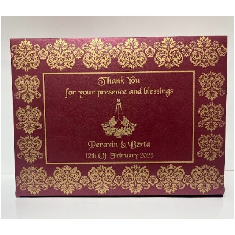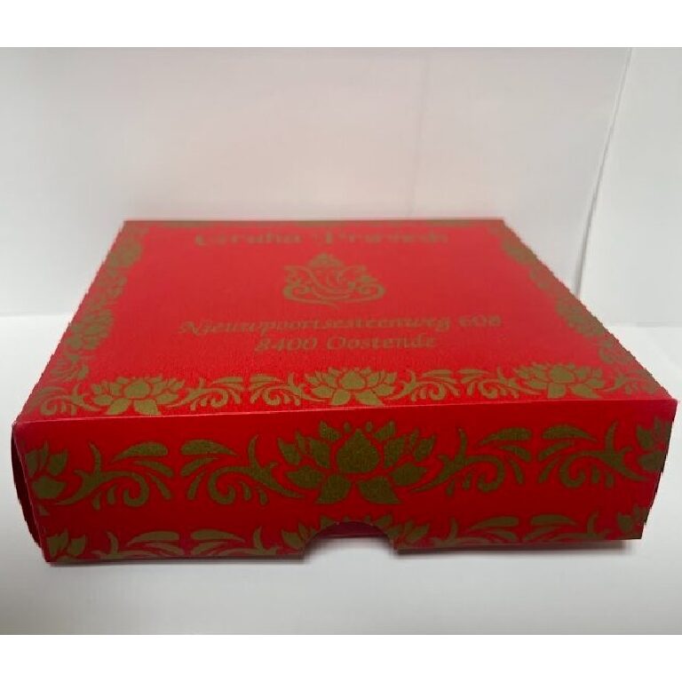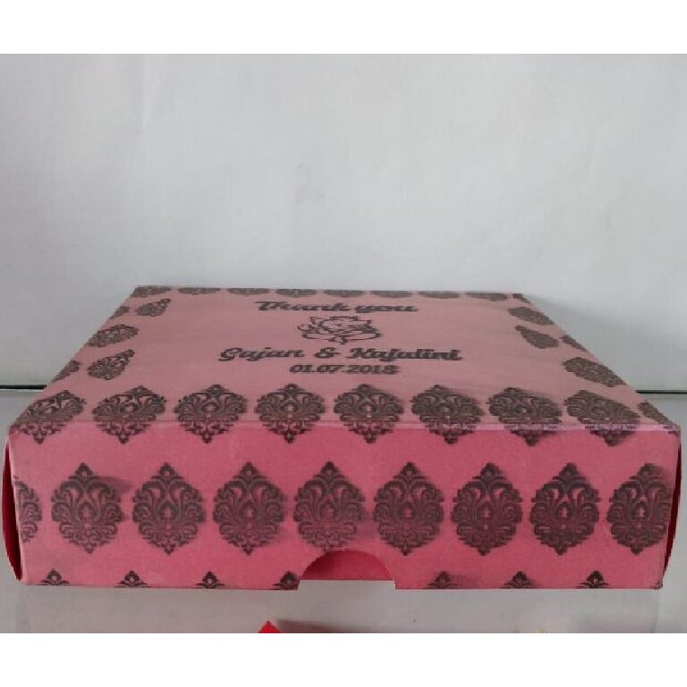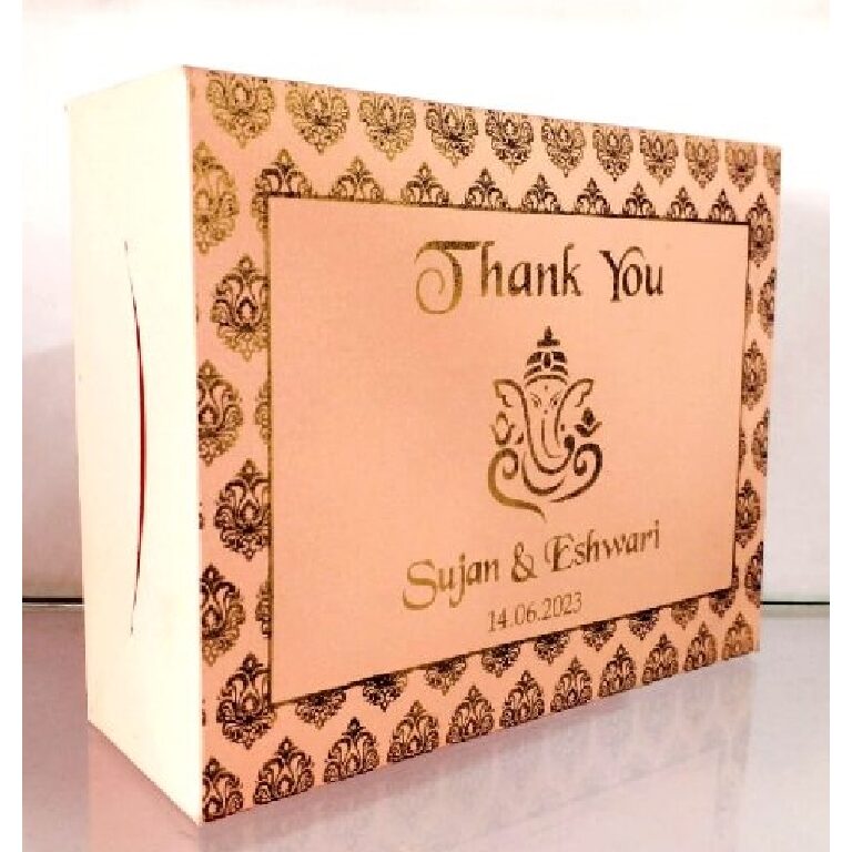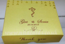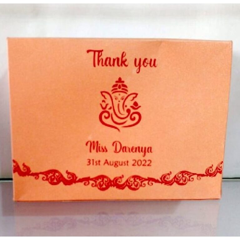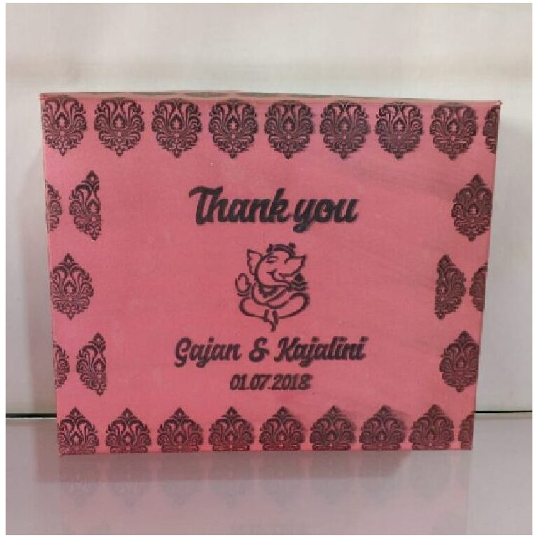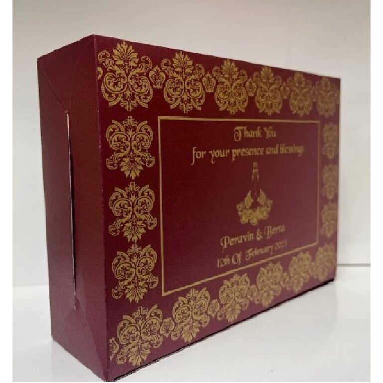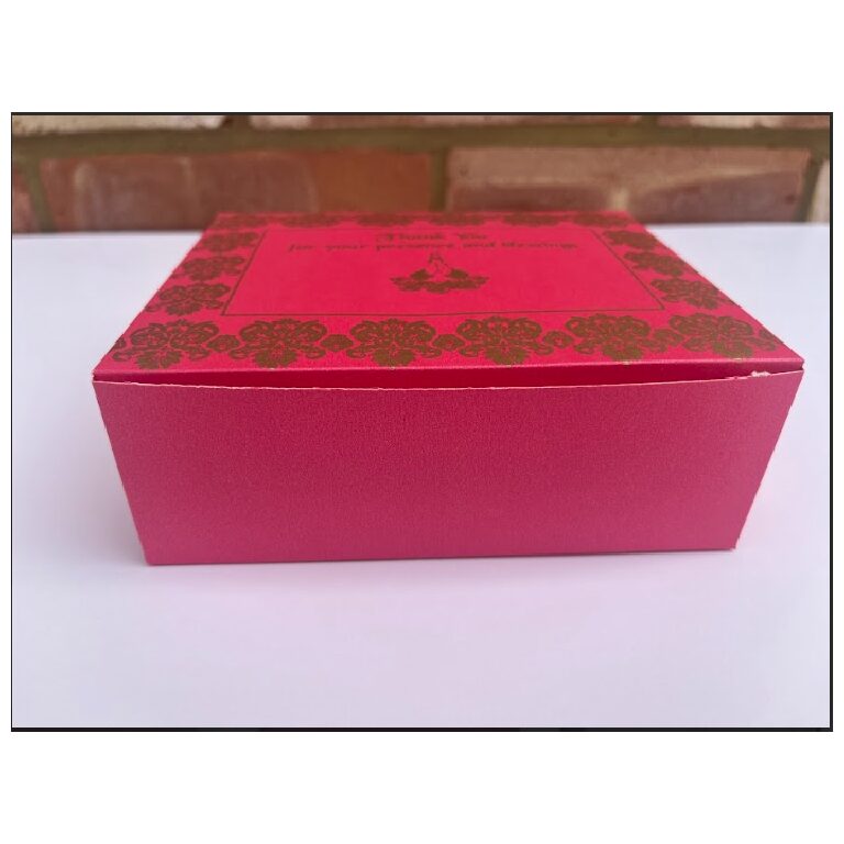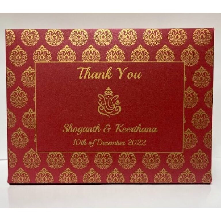 Snack boxes are one of the most popular stationery in Indian Wedding celebrations. Snack boxes are given initially with the sncks or breakfast or at the end of the ceremony. Nila cards produce customised mittai boxes as well to give along with the Indian wedding Invitations. We print customer names, logos and card designs to match the wedding Invitations. To match your wedding theme, we offer a wide variety of colour boards and ink options so each of your wedding stationary is matched and beautifully reflects your style and theme.