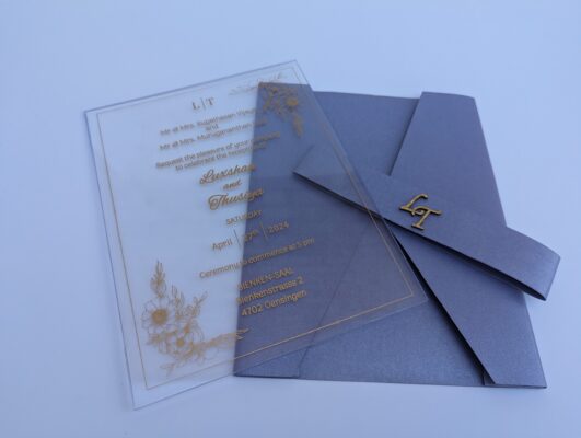 Nila cards have added an exciting new range of Laser cut cards for Hindu, Sikh, Muslim, and Christian weddings. We also have laser-cut stickers. Such as Ganpati, Radha Krishna, Ek Onkar, Allah, Bismillah Cross, and many more which give added richness to your wedding invitations. All invitations are fully custom-made. What you see on the website is an example of the work we can deliver to you.