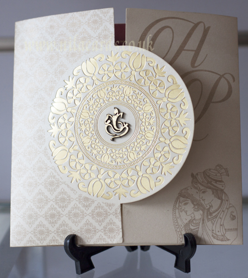 We have added an exciting new ranges of Laser cut cards for Hindu, Sikh, Muslim and Christian weddings. We also lazer cut stickers as Ganpati, Radha Krishna, Ek Onkar, Allah, Bismillah Cross and many more which gives a added richness to your wedding invitations. All invitations are fully custom made. What you see on the website is an example of the work we can deliver to you.