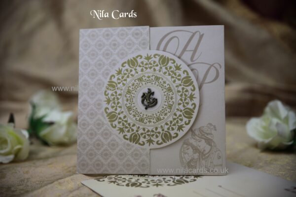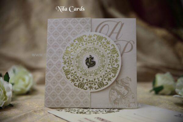 Nila Cards London is specialized in wedding invitations which is printed with religious or non religious symbols. Some wedding cards are modern and elegant so that they suit for all faiths. We use emblems, brocades and floral designs, also specially designed calligraphy initials to be used on all the wedding stationery you order through us. We Differentiate the wedding ceremony, Sangeeth, Mehndi, Wedding, Ananad karaj, Waleema and Reception with difference symbols, boarders formats so the gusts can clearly recognize the functions.
