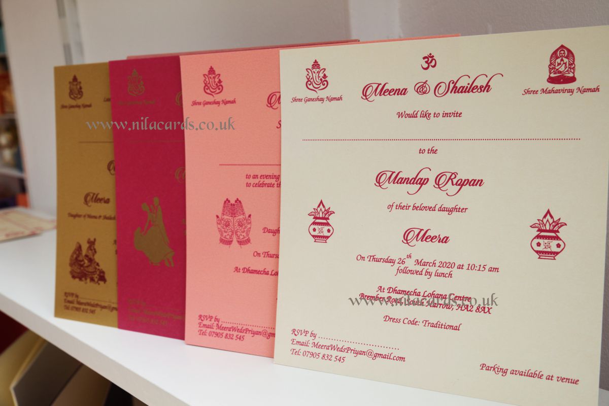 Nila Cards London is specialized in wedding invitations that are printed with religious or nonreligious symbols.
