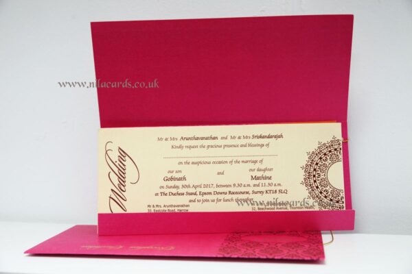 Nila Cards is a UK based company and we maintain our differentiation from usual ready made Indian wedding cards available on the Internet from India. We take extreme to ensure that your Indian Wedding Card is made to your requirements.
