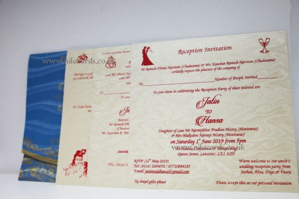 We continuously add new ranges of Invitations for Hindu, Sikh, Muslim and all Asian weddings. We do have a collection of English invites with beautiful colours and selections as well. Our invitations are uncommon, They come in bright and mat colours according to your taste of selection. We clearly know that you look to build a theme for your wedding a uniformity in colours from the start to end to match your outfits, stationeries and hall decorations. All of the wedding invitations are totally bespoke and can be customized to suit your style taste. Our invitations comes with matching stationary such as inserts, RSVP cards, Mithai boxes, cake boxes, wedding favour boxes and bags, gift bags, Hindu Cards London ,sweet boxes, wedding ceremony cards, place cards, table plans and much more.