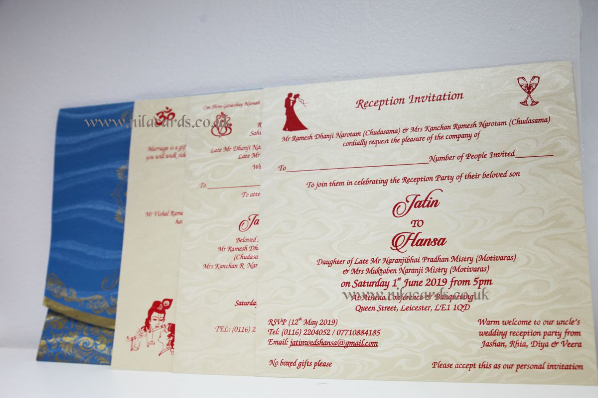 Nila Cards is a UK based company and we maintain our differentiation from usual ready made Indian wedding cards available on the Internet from India. We take extreme to ensure that your Indian Wedding Card is made to your requirements.