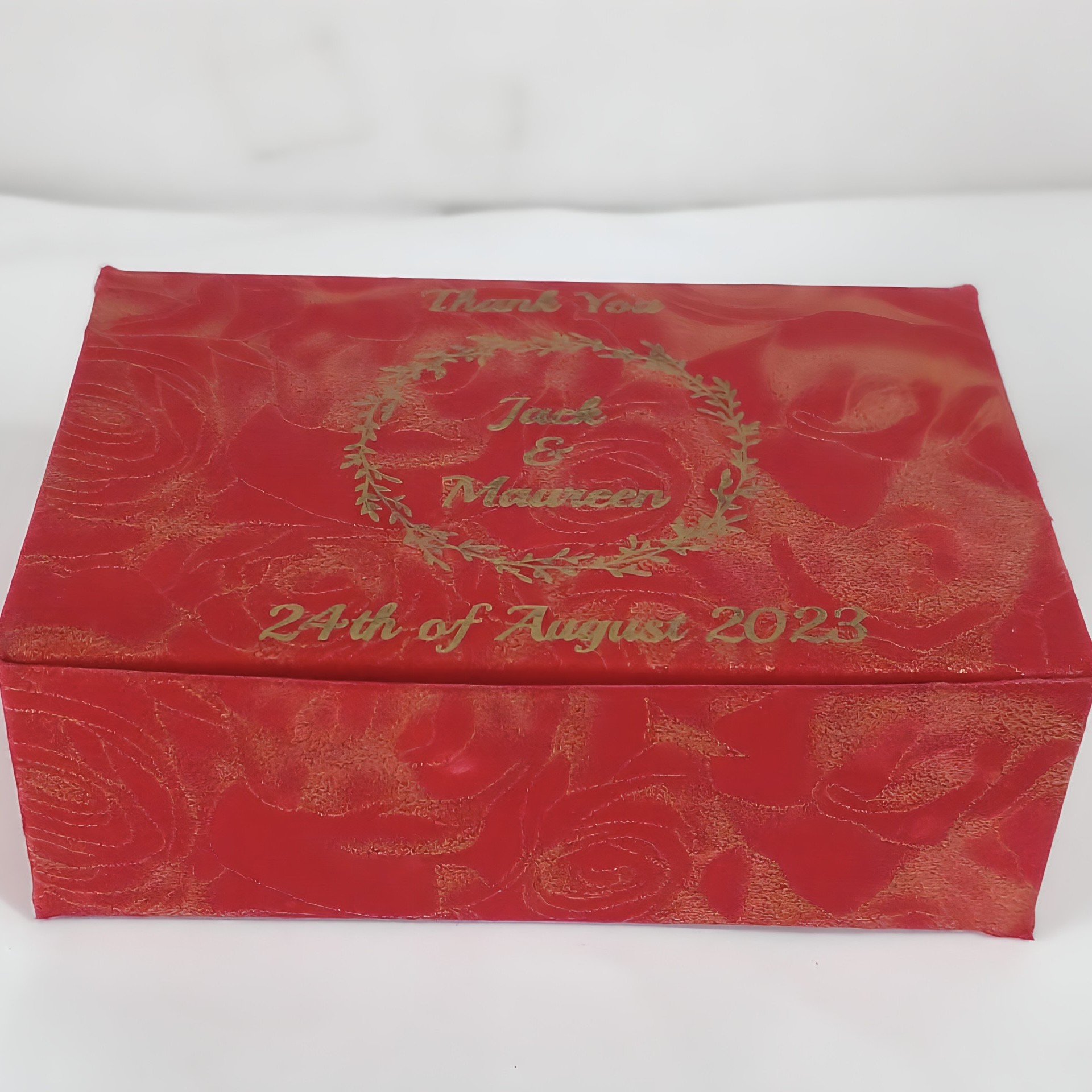 Beautiful Rose Red Cake Box is our unique product. We know the importance of your big day and our part in providing a grand opening to the event. Our invitations are stylish, uncommon, and eye-catching. It will satisfy your expectation and also earns appreciation from your family and friends.