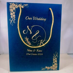 Blue colour gift bag is our unique product. We know the importance of your big day and our part in providing a grand opening to the event. Our invitations are stylish, uncommon, and eye-catching. It will satisfy your expectation and also earns appreciation from your family and friends.