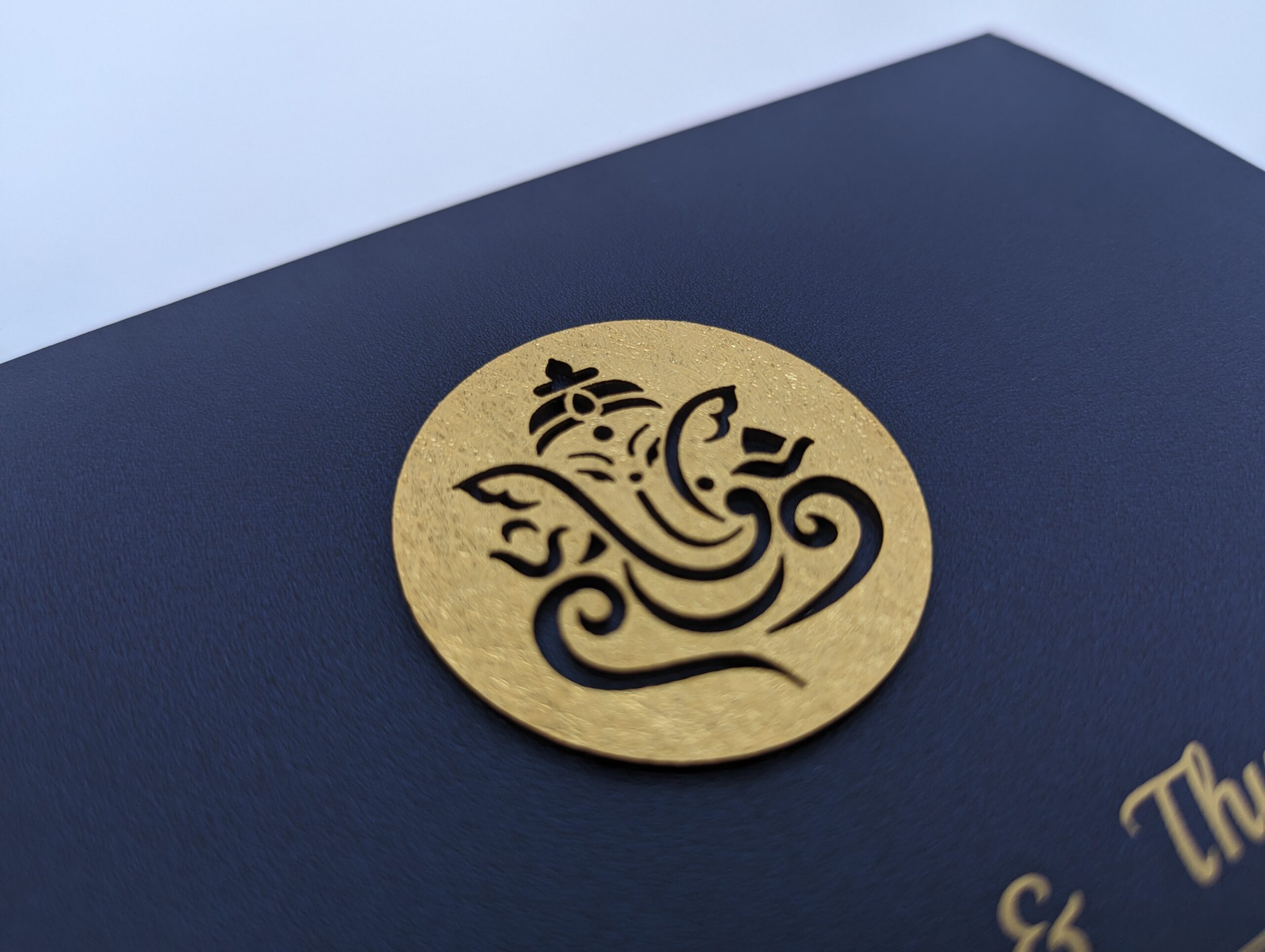 We have added an exciting new ranges of Laser cut cards for Hindu, Sikh, Muslim and Christian weddings. We also laser cut stickers as Ganpati, Radha Krishna, Ek Onkar, Allah, Bismillah Cross and many more which gives a added richness to your wedding invitations. All invitations are fully custom made. What you see on the website is an example of the work we can deliver to you.