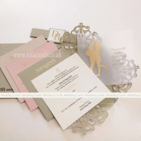 Nila Cards London is specialized in wedding invitations which is printed with religious or non religious symbols. Some wedding cards are modern and elegant so that they suit for all faiths. We use emblems, brocades and floral designs, also specially designed calligraphy initials to be used on all the wedding stationery you order through us. We Differentiate the wedding ceremony, Sangeeth, Mehndi, Wedding, Ananad karaj, Waleema and Reception with difference symbols, boarders formats so the gusts can clearly recognize the functions.