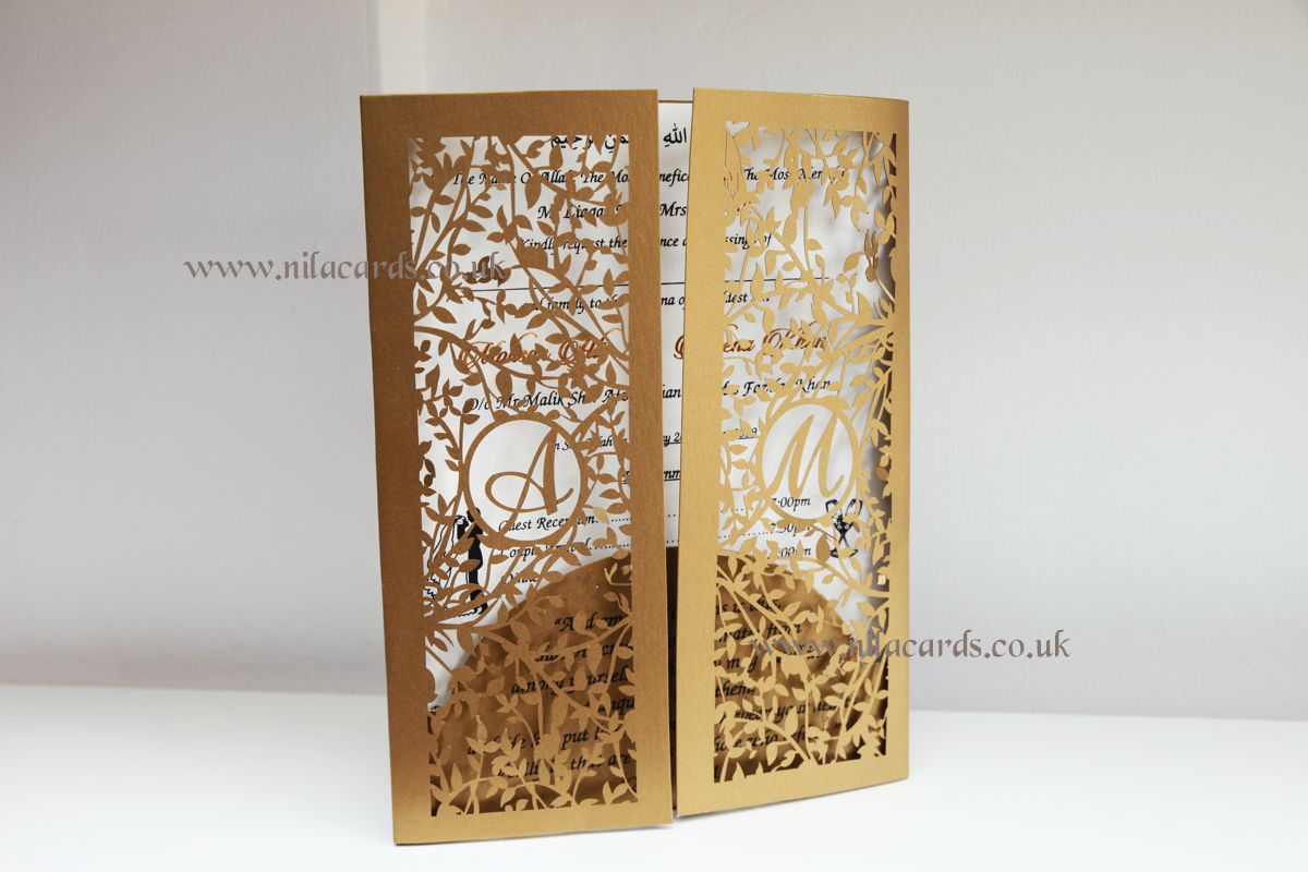 Nila Cards London is specialized in wedding invitations which is printed with religious or non religious symbols. Some wedding cards are modern and elegant so that they suit for all faiths. We use emblems, brocades and floral designs, also specially designed calligraphy initials to be used on all the wedding stationery you order through us. We Differentiate the wedding ceremony, Sangeeth, Mehndi, Wedding, Ananad karaj, Waleema and Reception with difference symbols, boarders formats so the gusts can clearly recognize the functions.