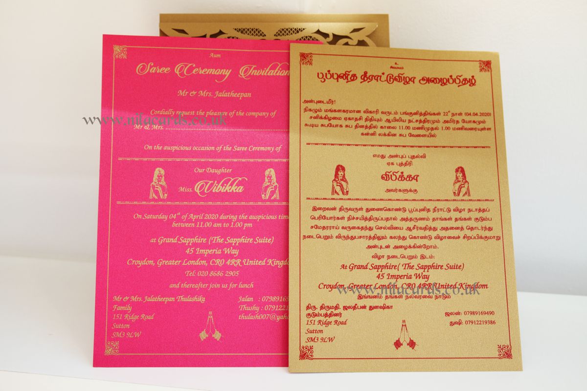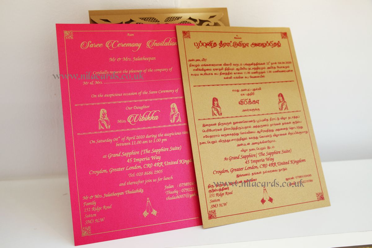 Nila Cards is a UK based company and we maintain our differentiation from usual ready made Indian wedding cards available on the Internet from India. We take extreme to ensure that your Indian Wedding Card is made to your requirements.