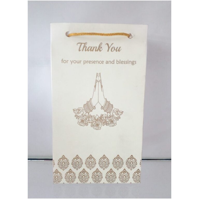 Cream colour Gift bag is our unique product. We know the importance of your big day and our part in providing a grand opening to the event. Our invitations are stylish, uncommon, and eye-catching. It will satisfy your expectation and also earns appreciation from your family and friends.