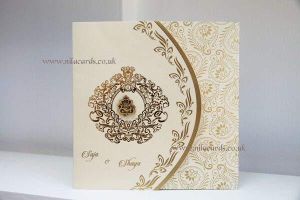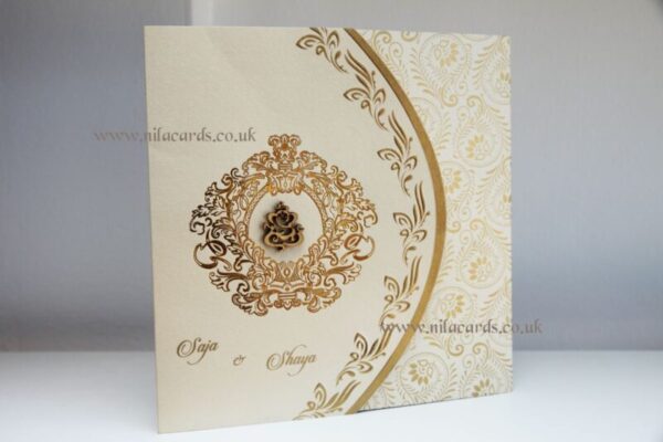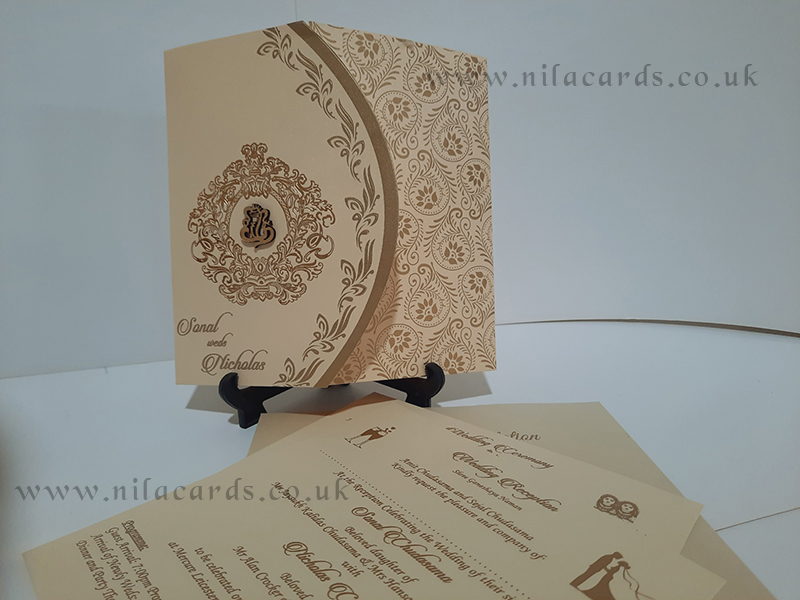 Nila Cards London is specialized in wedding invitations which is printed with religious or non religious symbols. Some wedding cards are modern and elegant so that they suit for all faiths. We use emblems, brocades and floral designs, also specially designed calligraphy initials to be used on all the wedding stationery you order through us. We Differentiate the wedding ceremony, Sangeeth, Mehndi, Wedding, Ananad karaj, Waleema and Reception with difference symbols, boarders formats so the gusts can clearly recognize the functions.