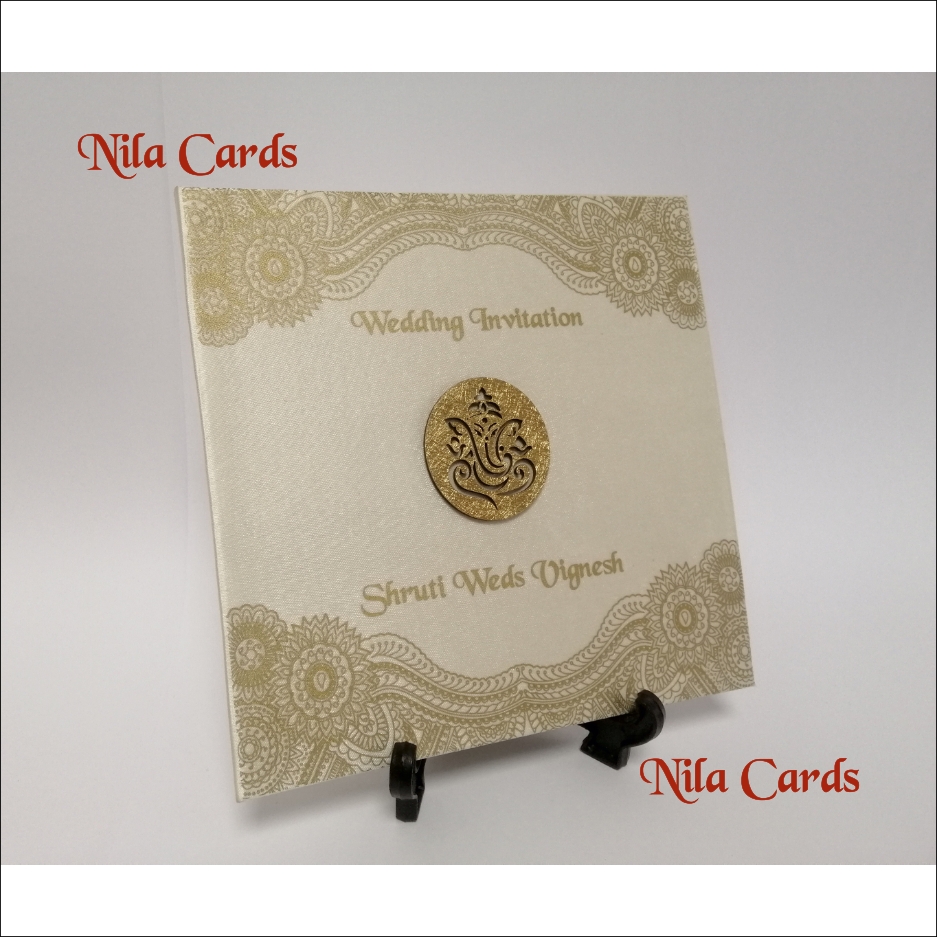 Cream Satin Laser Ganesh Invitation is one of our elegant design.