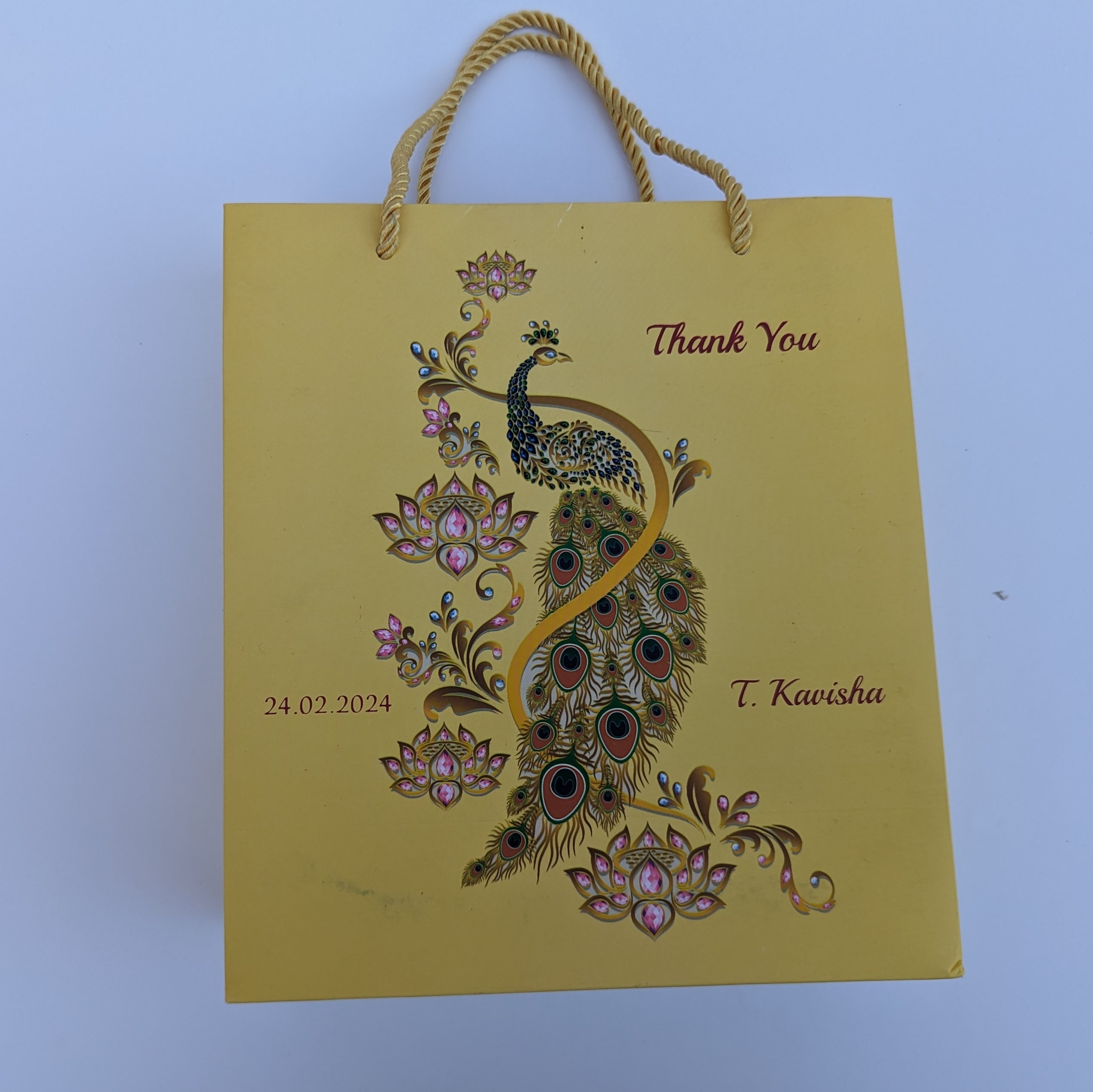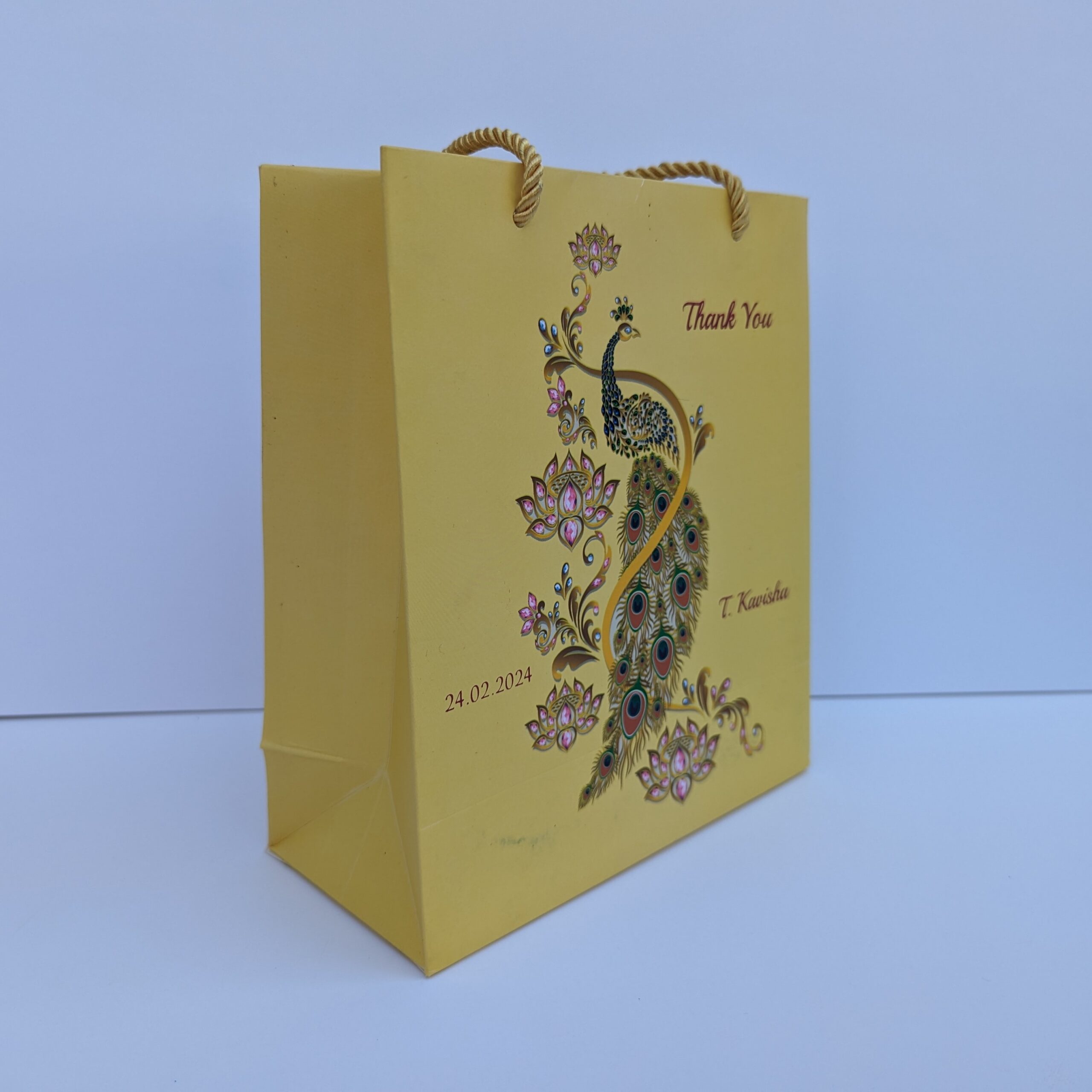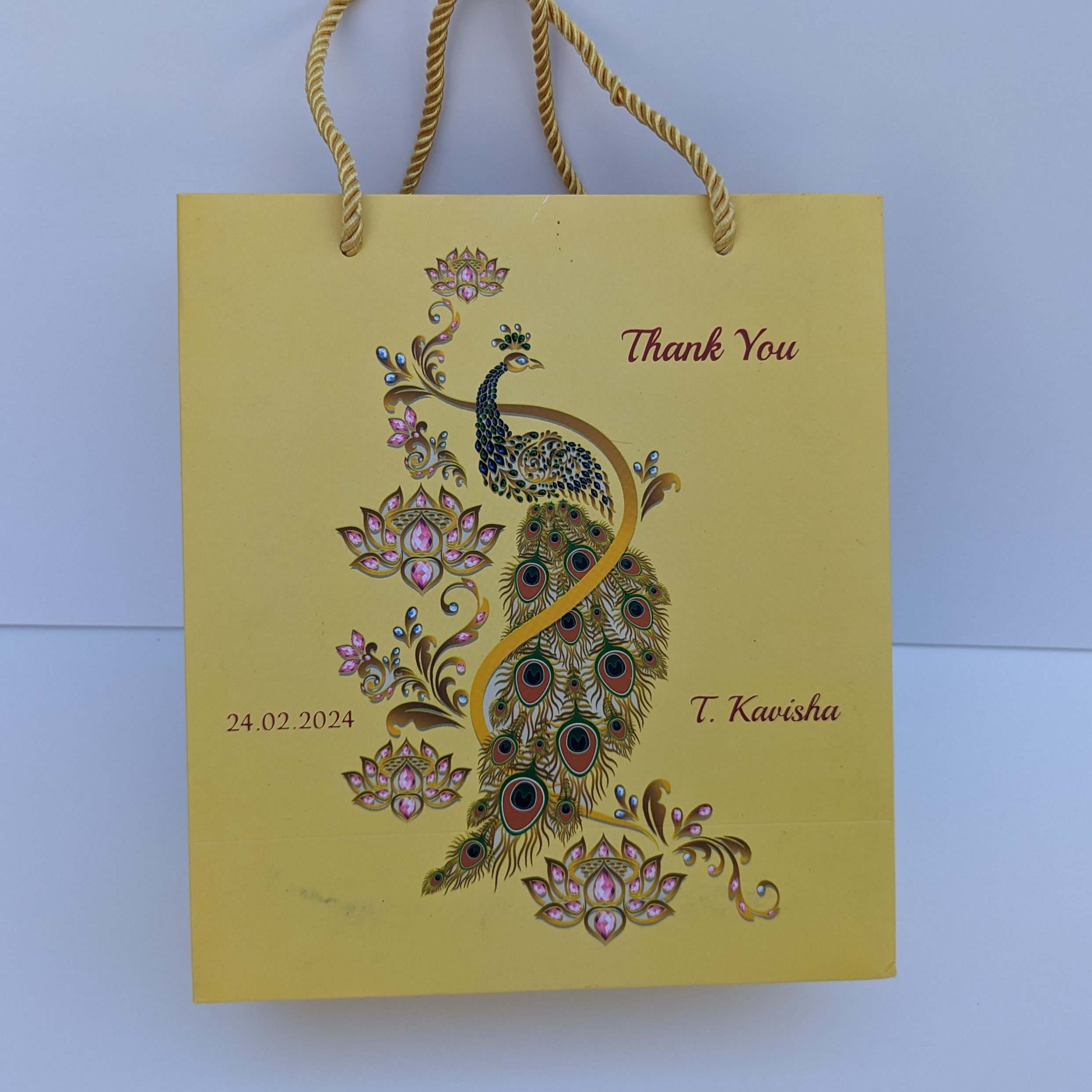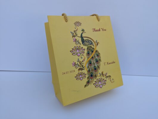 Digital peacock design gift bag is our unique product. We know the importance of your big day and our part in providing a grand opening to the event. Our invitations are stylish, uncommon, and eye-catching. It will satisfy your expectation and also earns appreciation from your family and friends.