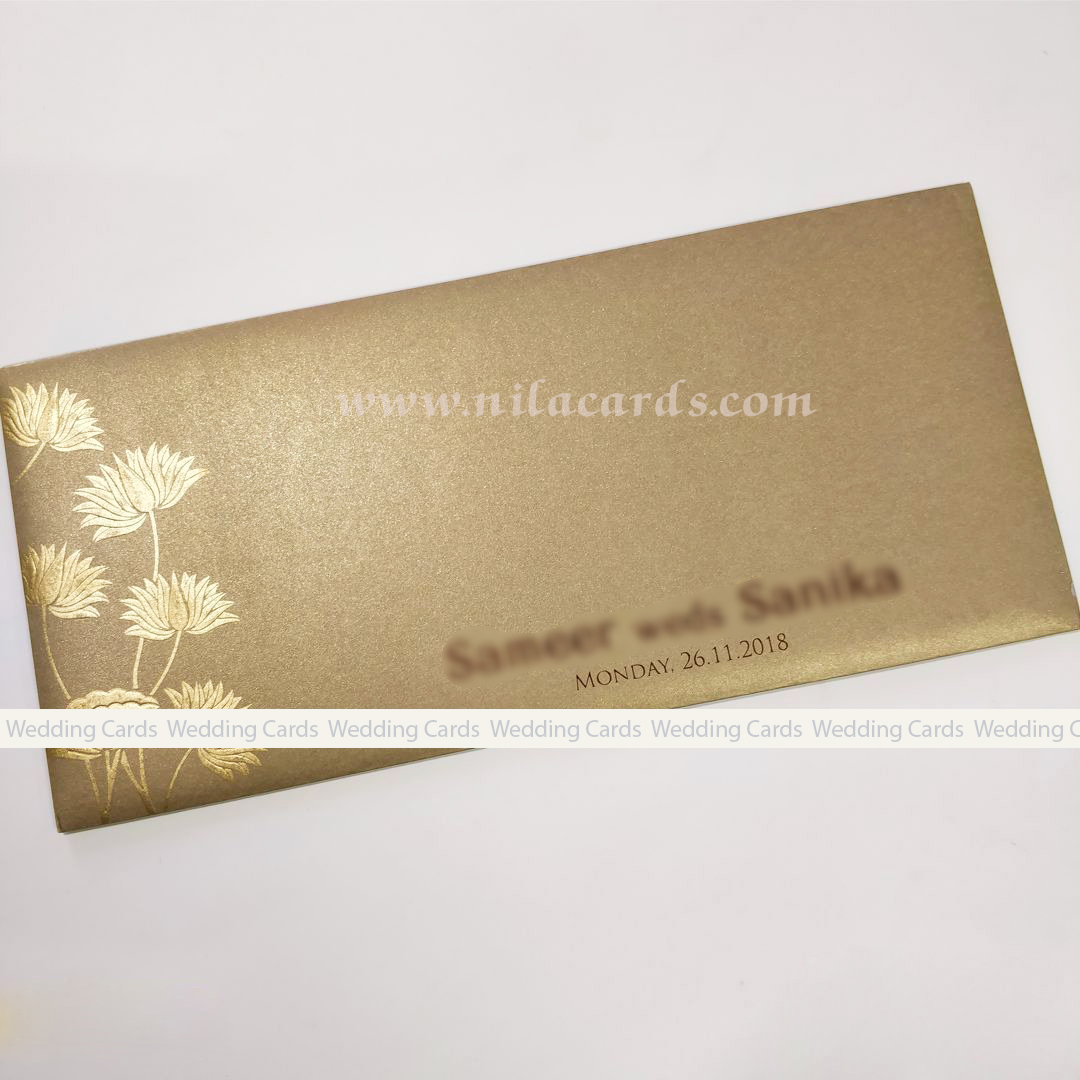 Gold Lotus Emboss Latest Wedding Invitation is one of our elegant design.