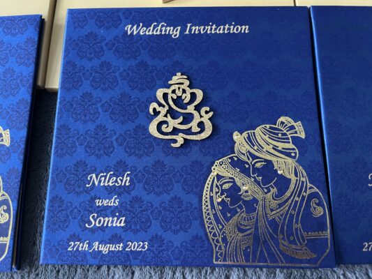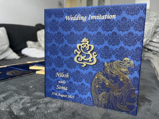 We continuously add new ranges of Invitations for Hindu, Sikh, Muslim, and all Asian weddings. We do have a collection of English invites with beautiful colors and selections as well. Our invitations are uncommon, They come in bright and mat colors according to your taste selection. We know that you look to build a theme for your wedding and uniformity in colors from start to end to match your outfits, stationeries, and hall decorations. All of the wedding invitations bespeak and can customize to suit your style and taste. Our invitations come with matching stationary such as inserts, RSVP cards, Mithai boxes, cake boxes, and wedding favor boxes. Also, we have bags, gift bags, Hindu Cards London, sweet boxes, wedding ceremony cards, place cards, table plans, and much more.