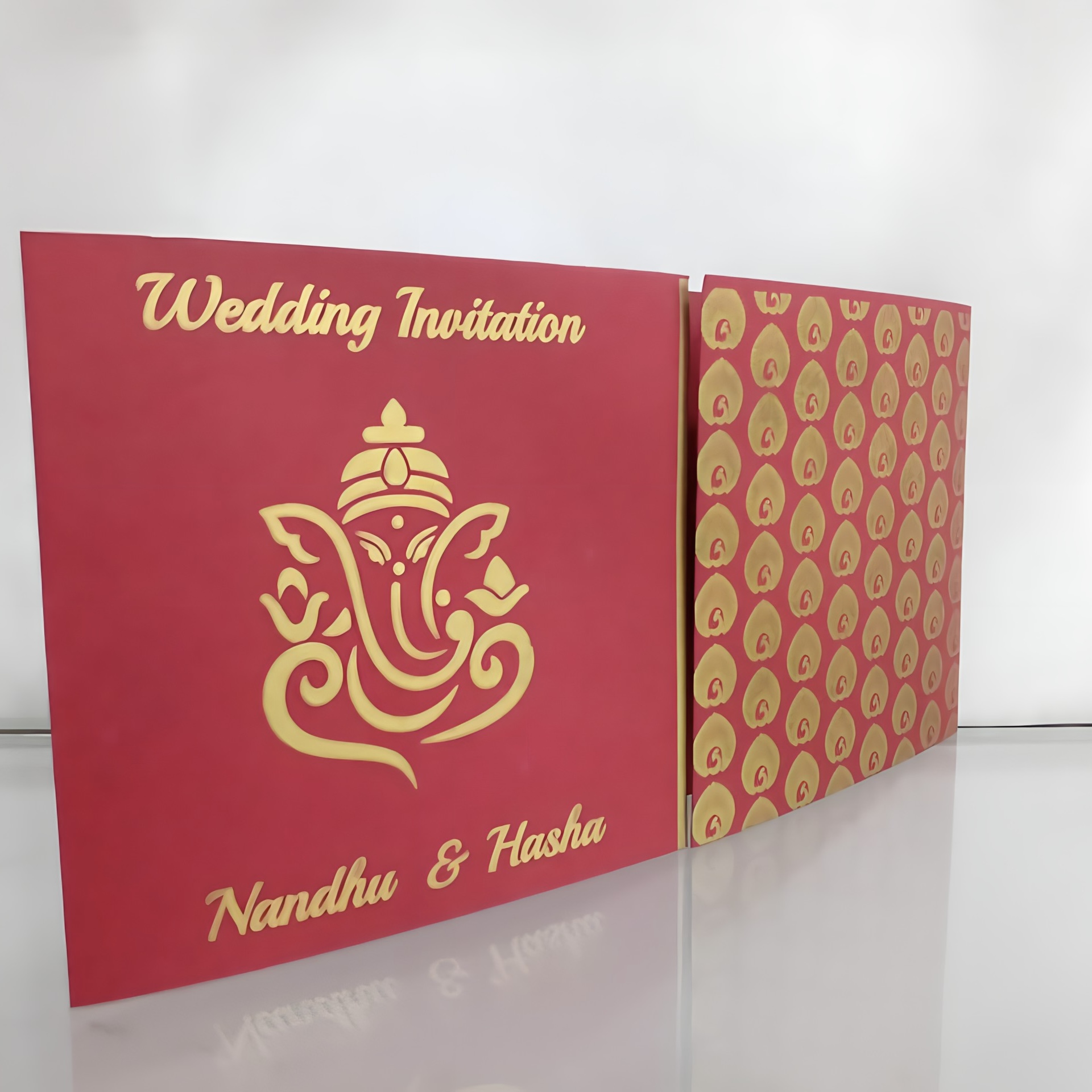 Nila cards have added an exciting new range of Laser cut cards for Hindu, Sikh, Muslim, and Christian weddings. We also have laser-cut stickers. Such as Ganpati, Radha Krishna, Ek Onkar, Allah, Bismillah Cross, and many more which give added richness to your wedding invitations. All invitations are fully custom-made. What you see on the website is an example of the work we can deliver to you.