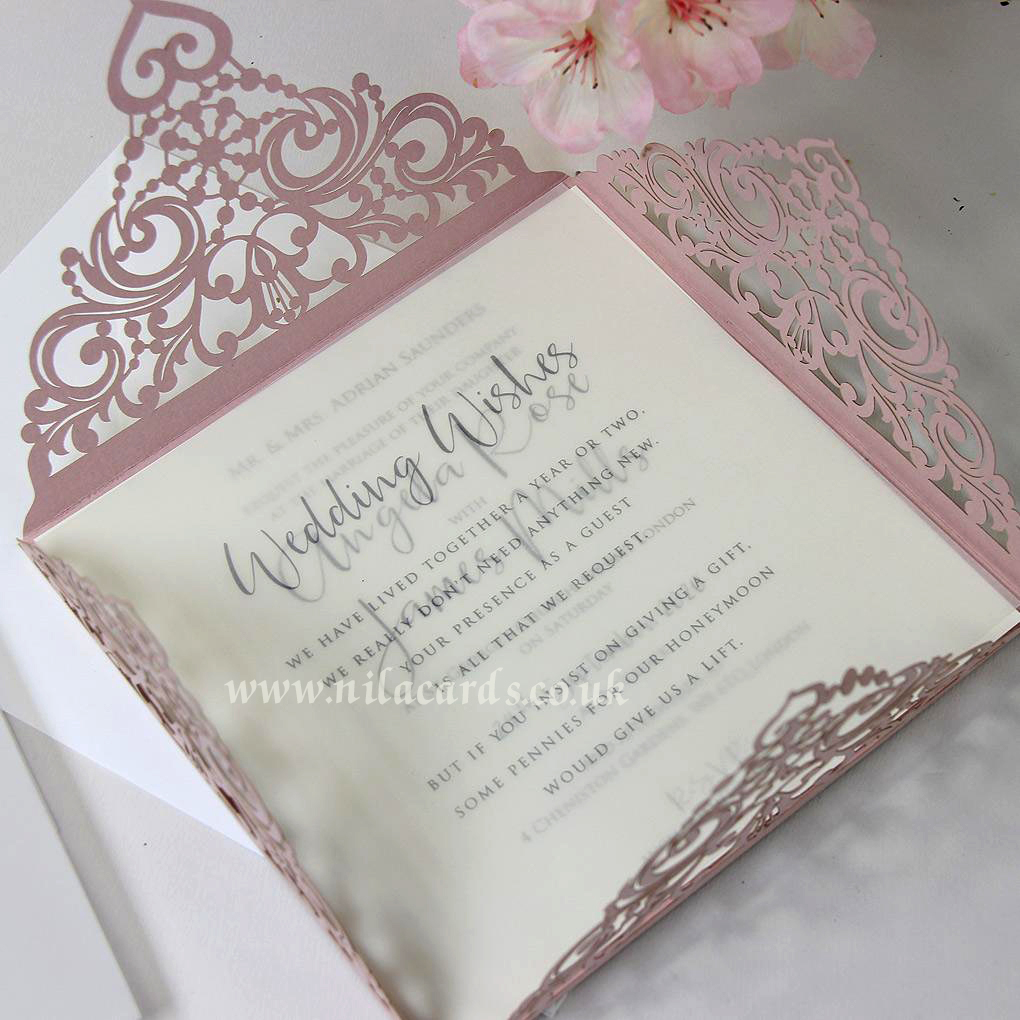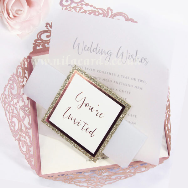 Mesh Style Pink Framed Laser Cut Wedding Invitation is one of our elegant design.