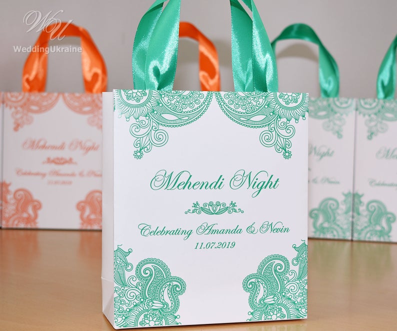 Personalized Gift Bags- G2 Medium 005- White with Turquoise Green Gift Bag is one of our beautiful design.