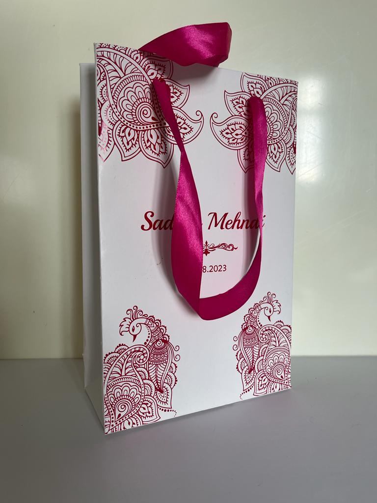 Personalized Gift Bags – White and Pink colour Gift Bag is our unique product. We know the importance of your big day and our part in providing a grand opening to the event. Our invitations are stylish, uncommon, and eye-catching. It will satisfy your expectation and also earns appreciation from your family and friends.