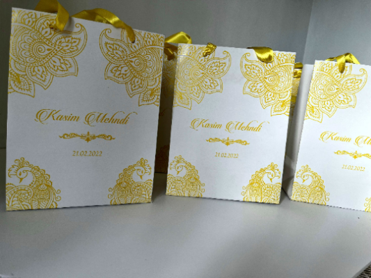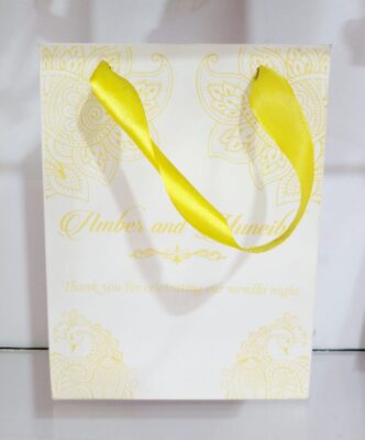 Personalized Gift Bags – White and Yellow colour Gift Bag is our unique product. We know the importance of your big day and our part in providing a grand opening to the event. Our invitations are stylish, uncommon, and eye-catching. It will satisfy your expectation and also earns appreciation from your family and friends.