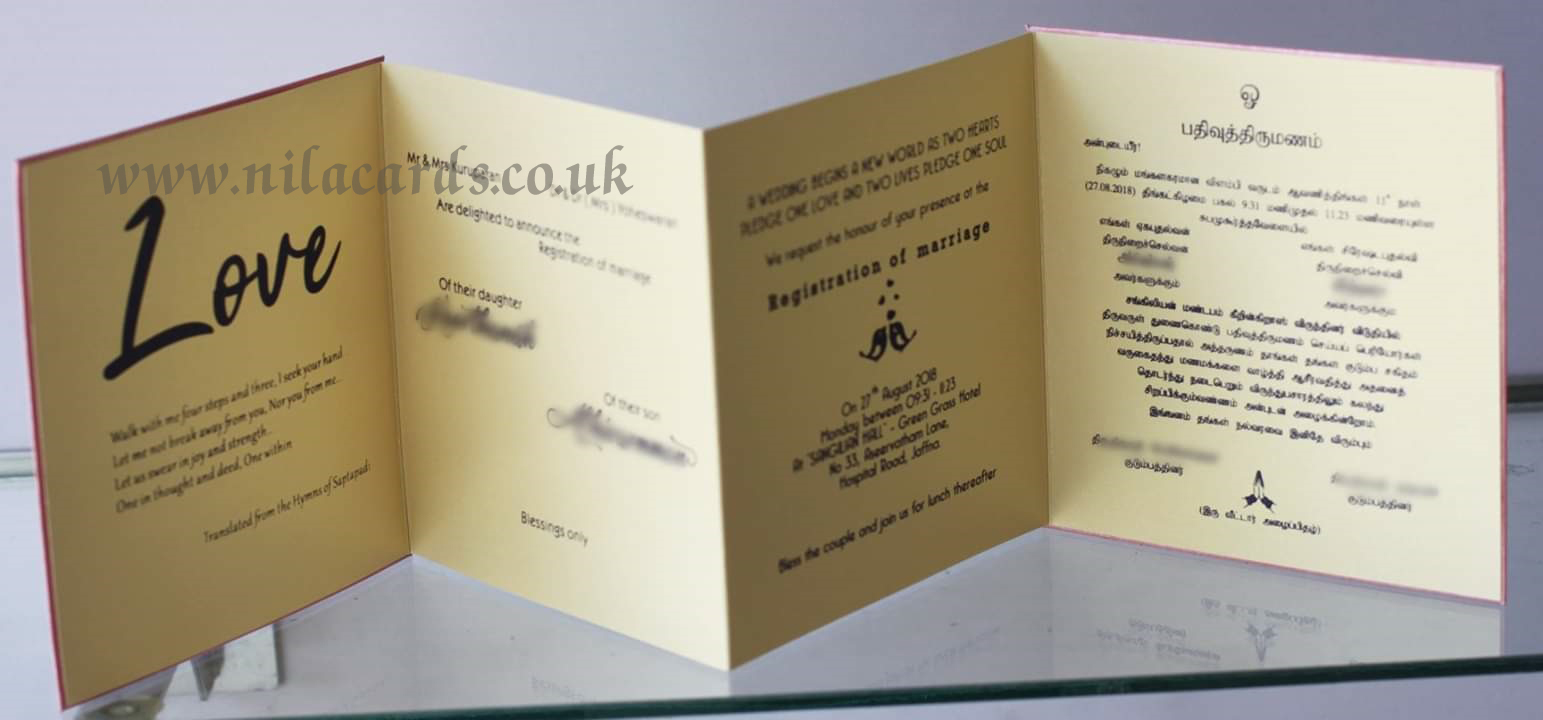 Nila Cards is a UK based company and we maintain our differentiation from usual ready made Indian wedding cards available on the Internet from India. We take extreme to ensure that your Indian Wedding Card is made to your requirements.