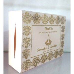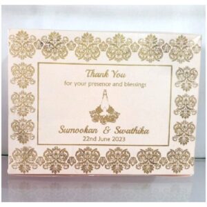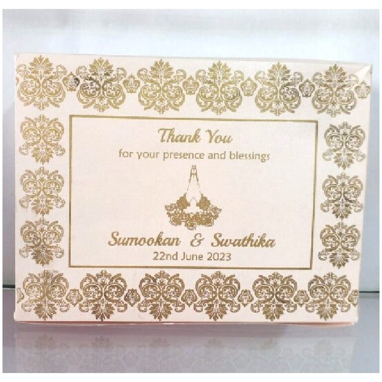 Pink with Gold Design Snack Box is our unique product. We know the importance of your big day and our part in providing a grand opening to the event. Our invitations are stylish, uncommon, and eye-catching. It will satisfy your expectation and also earns appreciation from your family and friends.