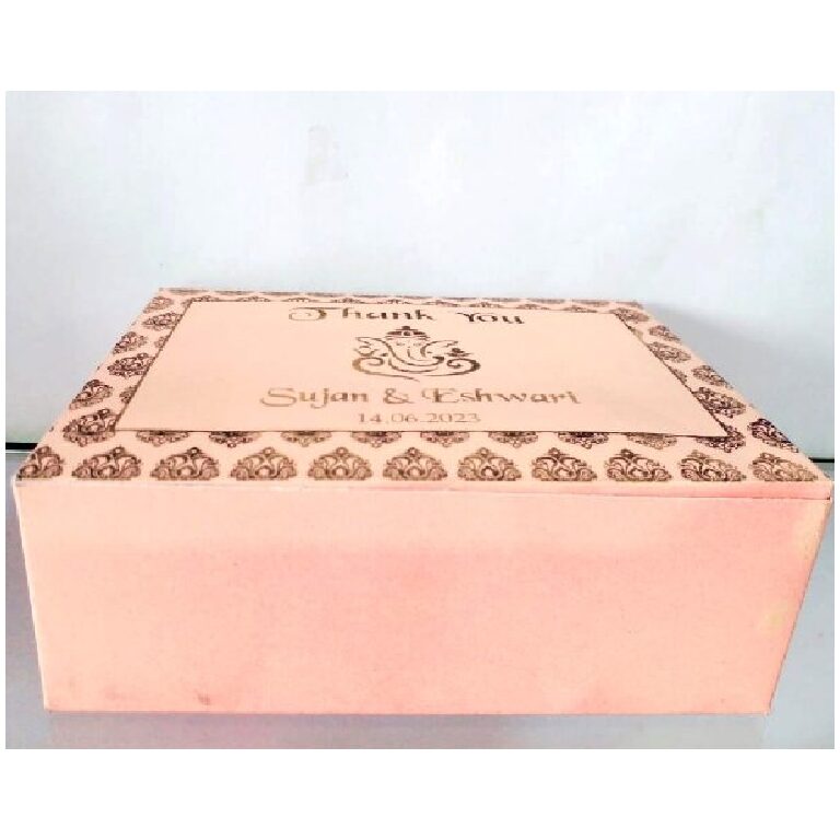 Pink with Gold Design Snack Box is our unique product. We know the importance of your big day and our part in providing a grand opening to the event. Our invitations are stylish, uncommon, and eye-catching. It will satisfy your expectation and also earns appreciation from your family and friends.