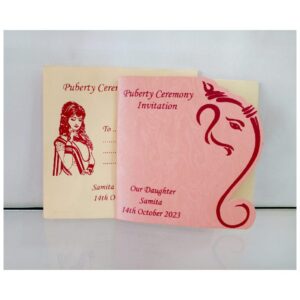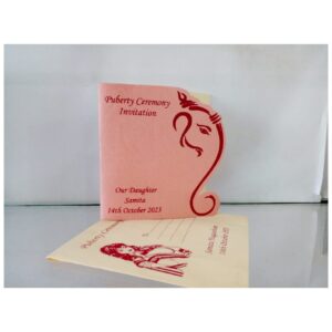 Peach Ganesh blessings Puberty Ceremony invitation is a very unique design. We know the importance of your big day and our part in providing a grand opening to the event. Our invitations are stylish, uncommon, and eye-catching. It will satisfy your expectation and also earns appreciation from your family and friends.