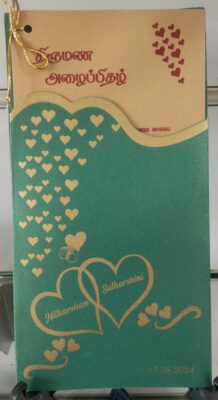 Indian weddings, and Tamil Hindu weddings are very colorful. They are traditional and rich. You also invite guests from different cultures. We create the look and feel of a classy finishing to a very traditional or very modern wedding invite. We use our technical expertise such as foiling, emboss, watermarks, velvet finishing and many more. Our printing background is rich and deep with more than 25years of experience in the industry, We use our expertise to mix the above techniques at correct places and appropriate proportions.