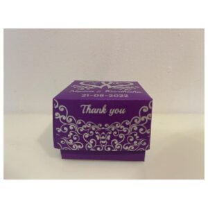 Purple top and buttom cake box is our unique product. We know the importance of your big day and our part in providing a grand opening to the event. Our invitations are stylish, uncommon, and eye-catching. It will satisfy your expectation and also earns appreciation from your family and friends.
