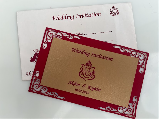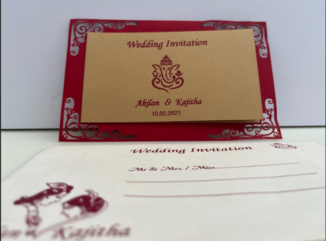 Nila cards have added an exciting new range of Laser cut cards for Hindu, Sikh, Muslim, and Christian weddings. We also have laser-cut stickers. Such as Ganpati, Radha Krishna, Ek Onkar, Allah, Bismillah Cross, and many more which give added richness to your wedding invitations. All invitations are fully custom-made. What you see on the website is an example of the work we can deliver to you.
