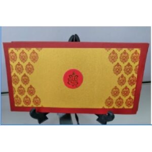 Red & Gold Wedding Invitation is one of our elegant design. This invitation card is made out of Red  textured paperboard with matching mailing envelope. Card has a Damask design and 3D Ganesh logo (Please note, this logo can be changed to any symbol or couple initial as per your preference). Please choose one of the colours from our colour pallet (please check the image) for envelopes. 120gsm shimmer paper. The card has  inserts with coordinated printed design.