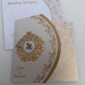 Nila cards have added an exciting new range of Laser cut cards for Hindu, Sikh, Muslim, and Christian weddings. We also have laser-cut stickers. Such as Ganpati, Radha Krishna, Ek Onkar, Allah, Bismillah Cross, and many more which give added richness to your wedding invitations. All invitations are fully custom-made. What you see on the website is an example of the work we can deliver to you.