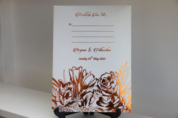 Singh Indian weddings and Tamil Hindu weddings are very colorful. They are traditional and rich. You also invite guests from different cultures. We create the look and feel of a classy finishing to a very traditional or very modern wedding invite. We use our technical expertise such as foiling, embossing, watermarks, velvet finishing, and many more. Our printing background is rich and deep with more than 25 years of experience in the industry.