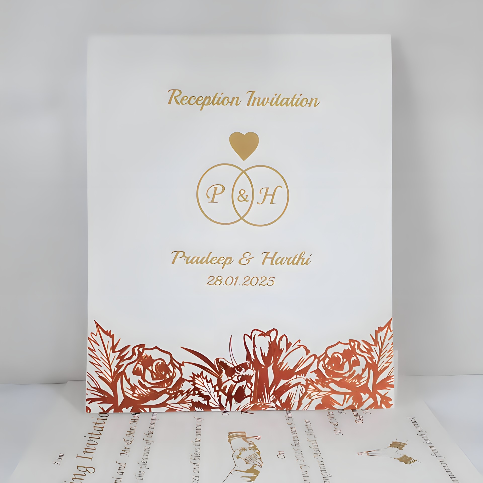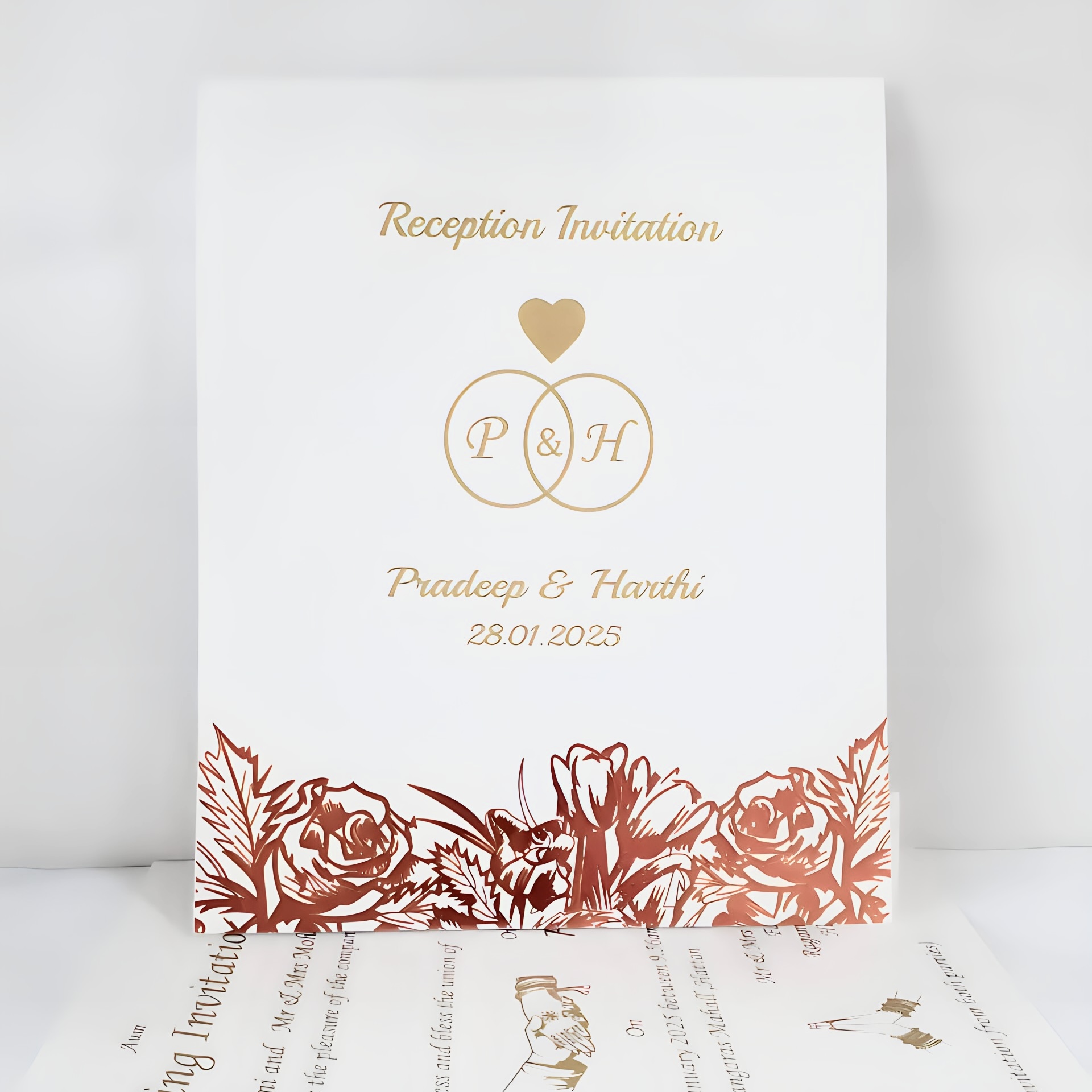 Rose Foil Reception invitation is our unique product. We know the importance of your big day and our part in providing a grand opening to the event. Our invitations are stylish, uncommon, and eye-catching. It will satisfy your expectation and also earns appreciation from your family and friends.