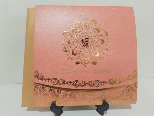 Some wedding cards are modern and elegant so that they suit all faiths. We use emblems, brocades and floral designs, also specially designed calligraphy initials uses on all the wedding stationery you order through us. We Differentiate the wedding ceremony, Sangeeth, Mehndi, Wedding, Ananad karaj, Waleema, and Reception with different symbols, and border formats so the guests can recognize the functions.