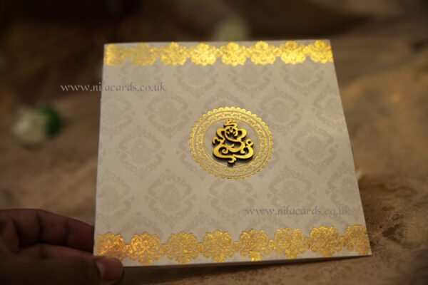 Nila Cards London is specialized in wedding invitations which is printed with religious or non religious symbols. Some wedding cards are modern and elegant so that they suit for all faiths. We use emblems, brocades and floral designs, also specially designed calligraphy initials to be used on all the wedding stationery you order through us. We Differentiate the wedding ceremony, Sangeeth, Mehndi, Wedding, Ananda Karaj, Waleema and Reception with difference symbols, boarders formats so the gusts can clearly recognize the functions.