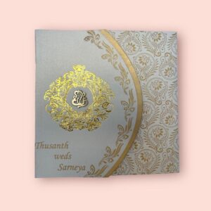 Indian weddings, and Tamil Hindu weddings are very colorful. They are traditional and rich. You also invite guests from different cultures. We create the look and feel of a classy finishing to a very traditional or very modern wedding invite. We use our technical expertise such as foiling, emboss, watermarks, velvet finishing and many more. Our printing background is rich and deep with more than 25years of experience in the industry, We use our expertise to mix the above techniques at correct places and appropriate proportions.