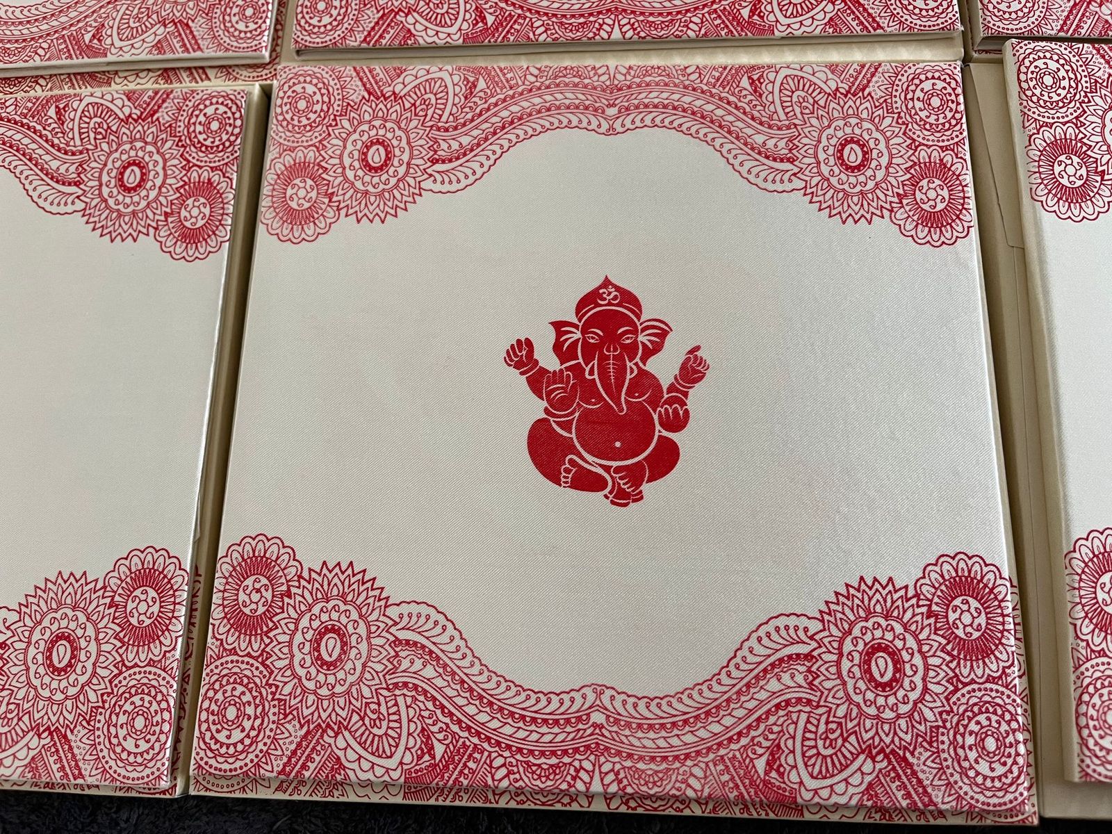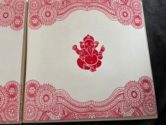 White Satin print Ganesh Invitation