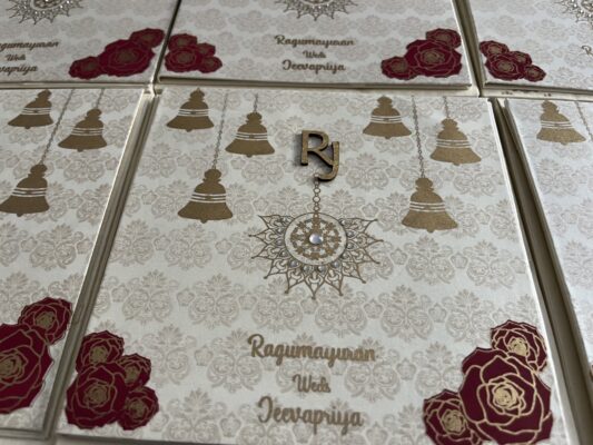 Nila cards have added an exciting new range of Laser cut cards for Hindu, Sikh, Muslim, and Christian weddings. We also have laser-cut stickers. Such as Ganpati, Radha Krishna, Ek Onkar, Allah, Bismillah Cross, and many more which give added richness to your wedding invitations. All invitations are fully custom-made. What you see on the website is an example of the work we can deliver to you.