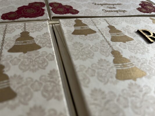 We continuously add new ranges of Invitations for Hindu, Sikh, Muslim, and all Asian weddings. We do have a collection of English invites with beautiful colors and selections as well. Our invitations are uncommon, They come in bright and mat colors according to your taste selection. We know that you look to build a theme for your wedding and uniformity in colors from start to end to match your outfits, stationeries, and hall decorations. All of the wedding invitations bespeak and can customize to suit your style and taste. Our invitations come with matching stationary such as inserts, RSVP cards, Mithai boxes, cake boxes, and wedding favor boxes. Also, we have bags, gift bags, Hindu Cards London, sweet boxes, wedding ceremony cards, place cards, table plans, and much more.